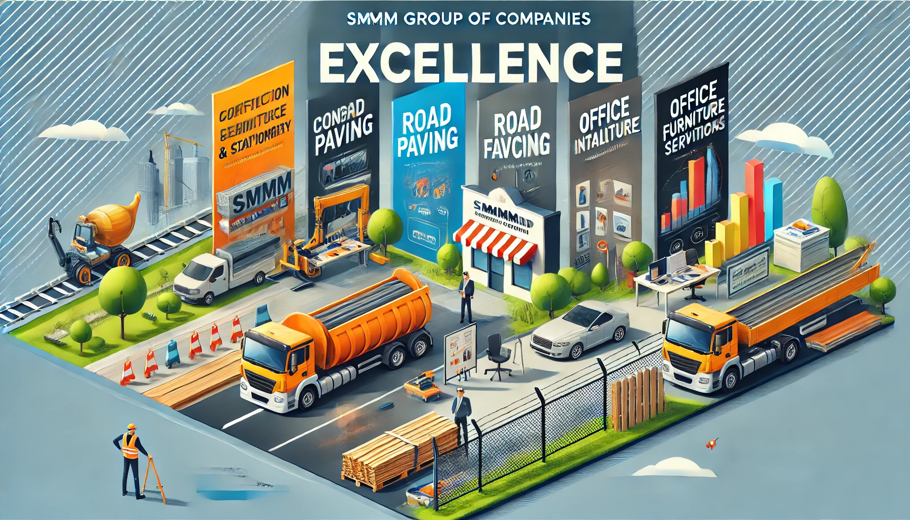 Comprehensive solutions tailored to your needs – from construction, paving, and fencing to renovation, transportation, and high-quality office supplies. At SMMM Group of Companies, we deliver excellence and reliability to ensure your projects and operations run smoothly and efficiently.